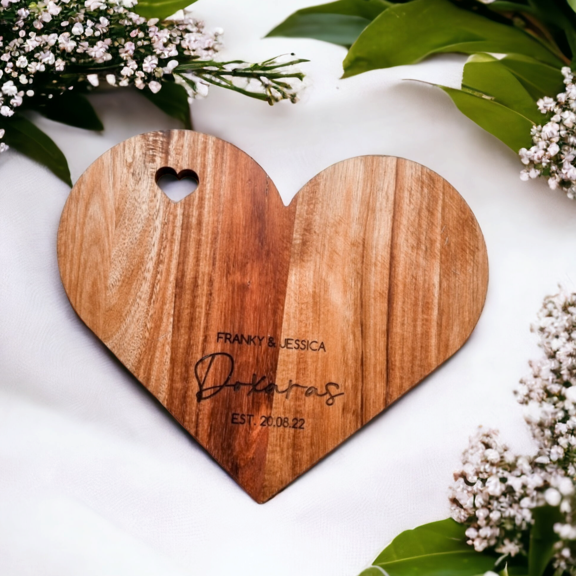 Order your personalised couple's heart-shaped chopping board today and add a touch of love and personalisation to your home!
