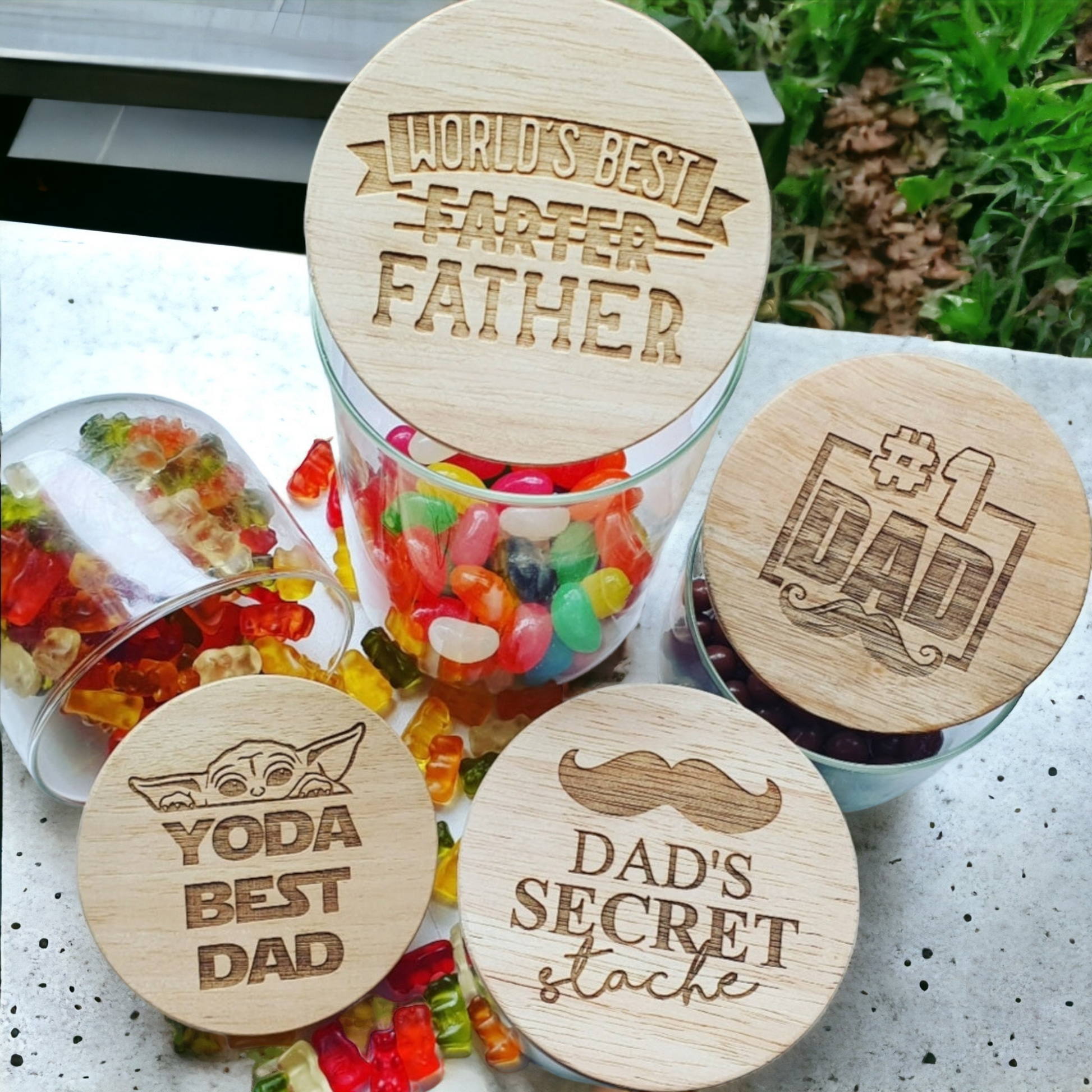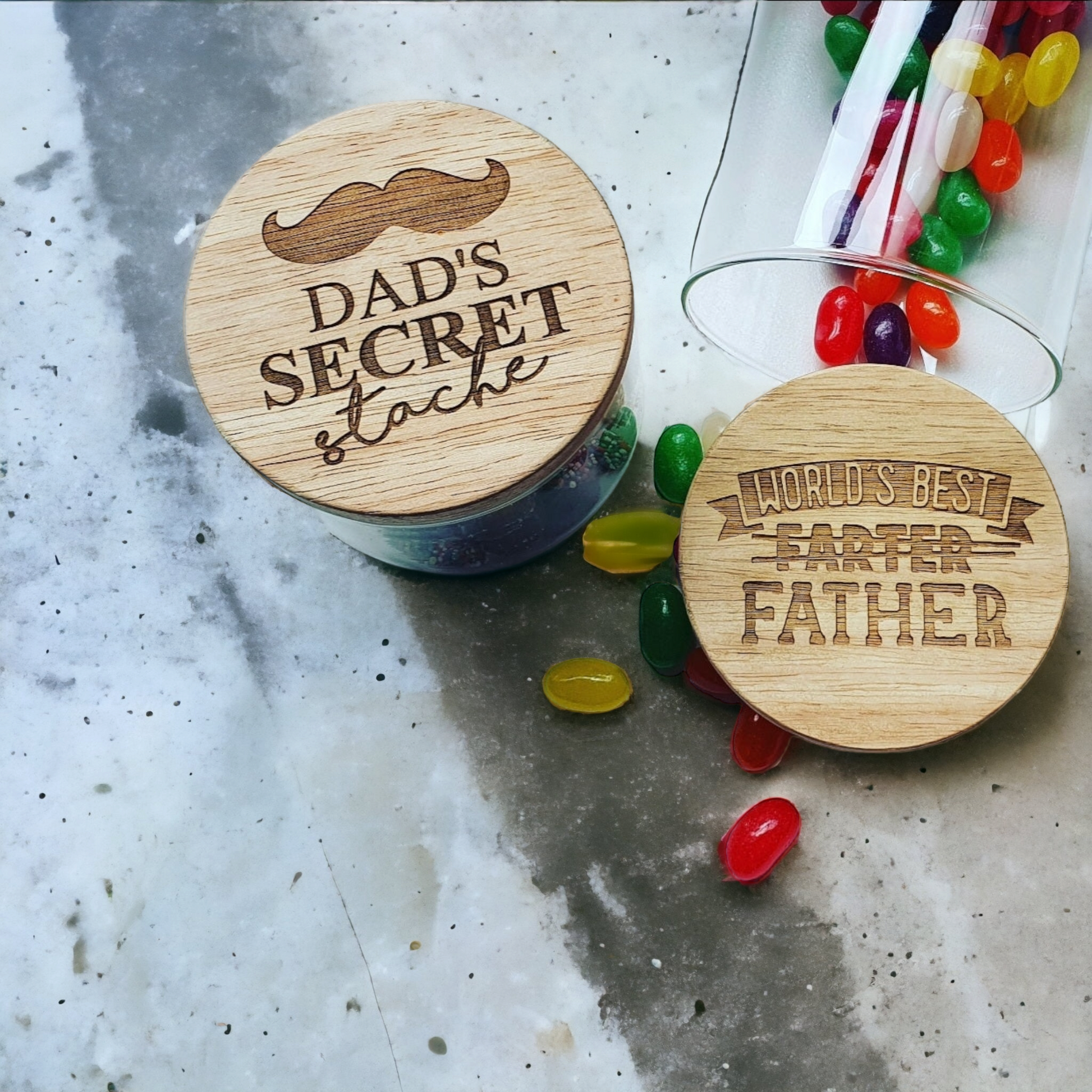 Looking for a unique and personalised gift for your dad, pop or grandad this father's day? Look no further than this high-quality lolly jar! Choose from a range of designs to personalise the glass jar and laser engrave the bamboo lid for a special and long-lasting touch. Fill the jar with his favourite lollies or cookies and create a gift that's tailored to his tastes.