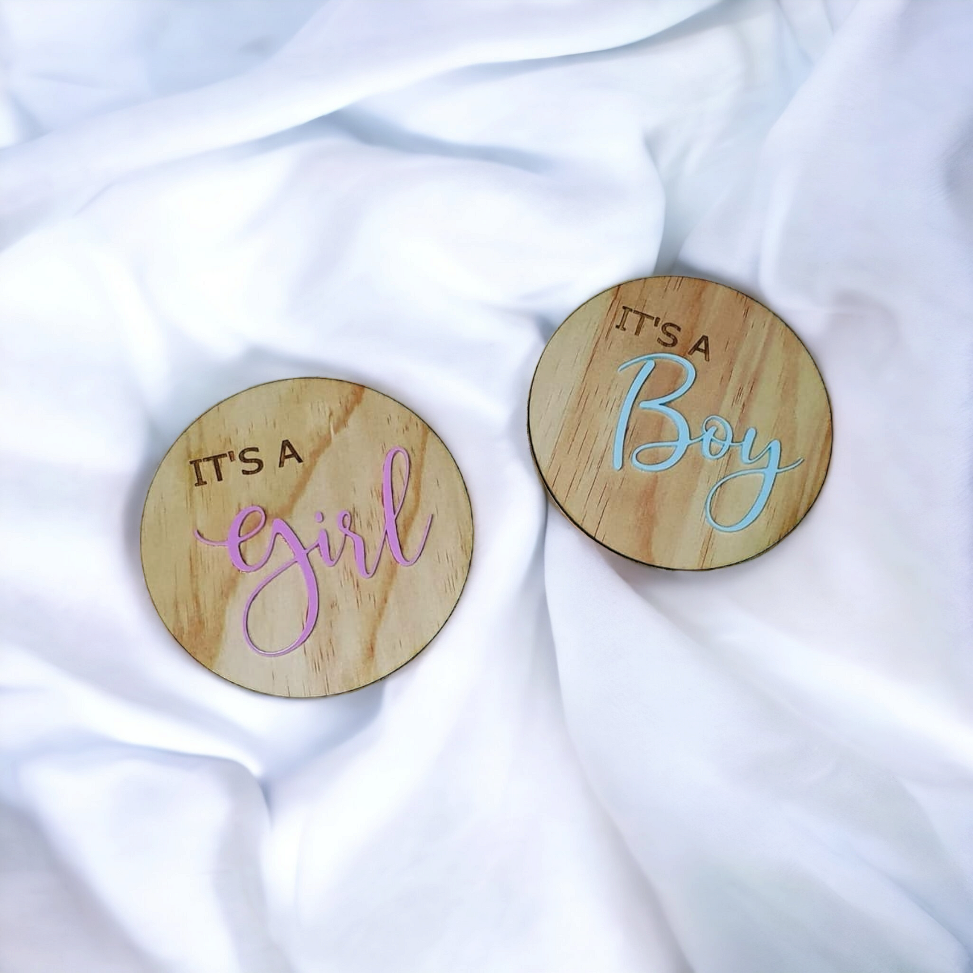 Looking for a stylish and unique way to announce the arrival of your new bundle of joy? Look no further than our adorable "It's a Boy" or "It's a Girl" wooden plaques! These wooden plaques are the perfect way to complete your announcement to friends and family, and they also make great props for gender reveal parties.