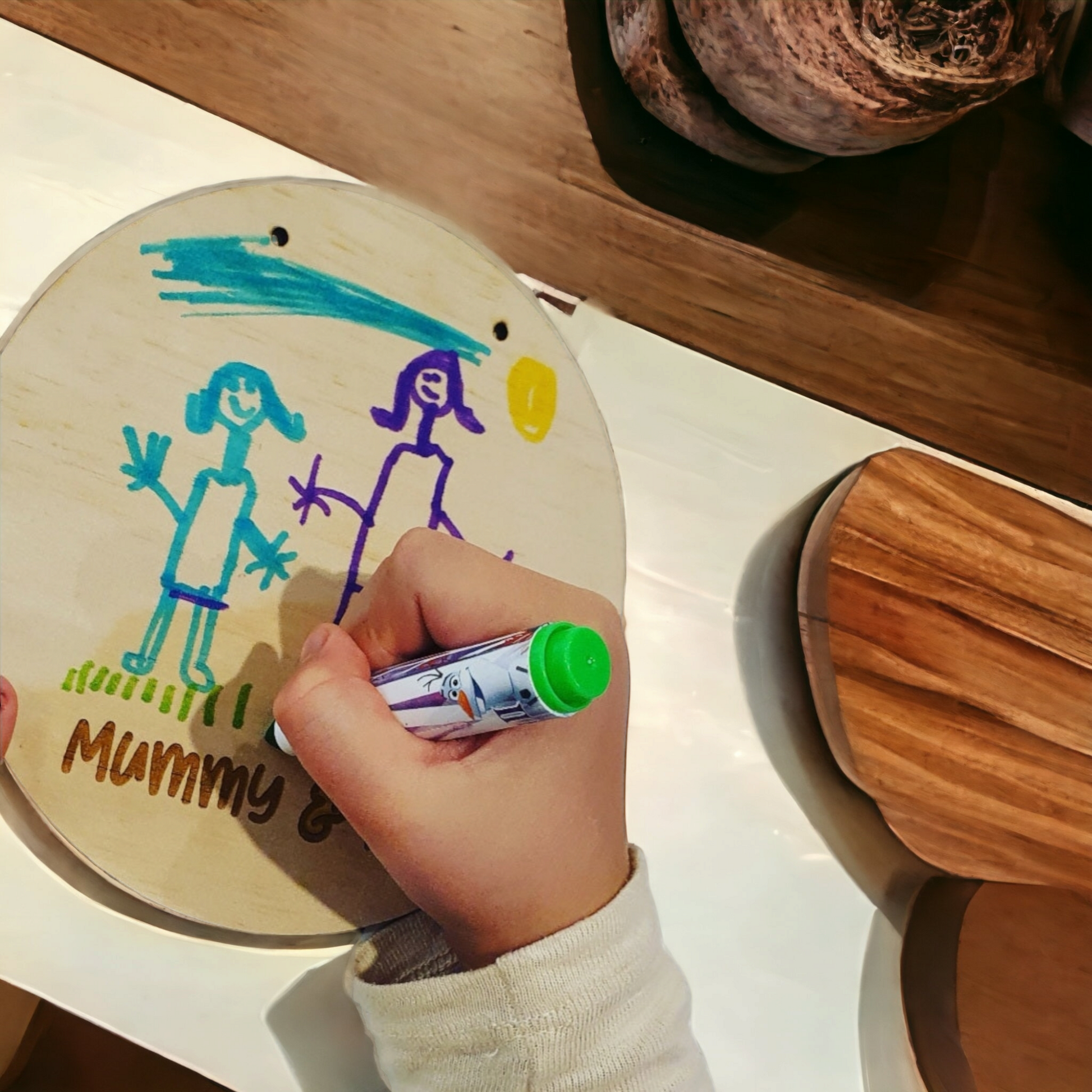 Everyone loves a handrawn picture! Simply draw directly onto the plaque with coloured pencils or pens!