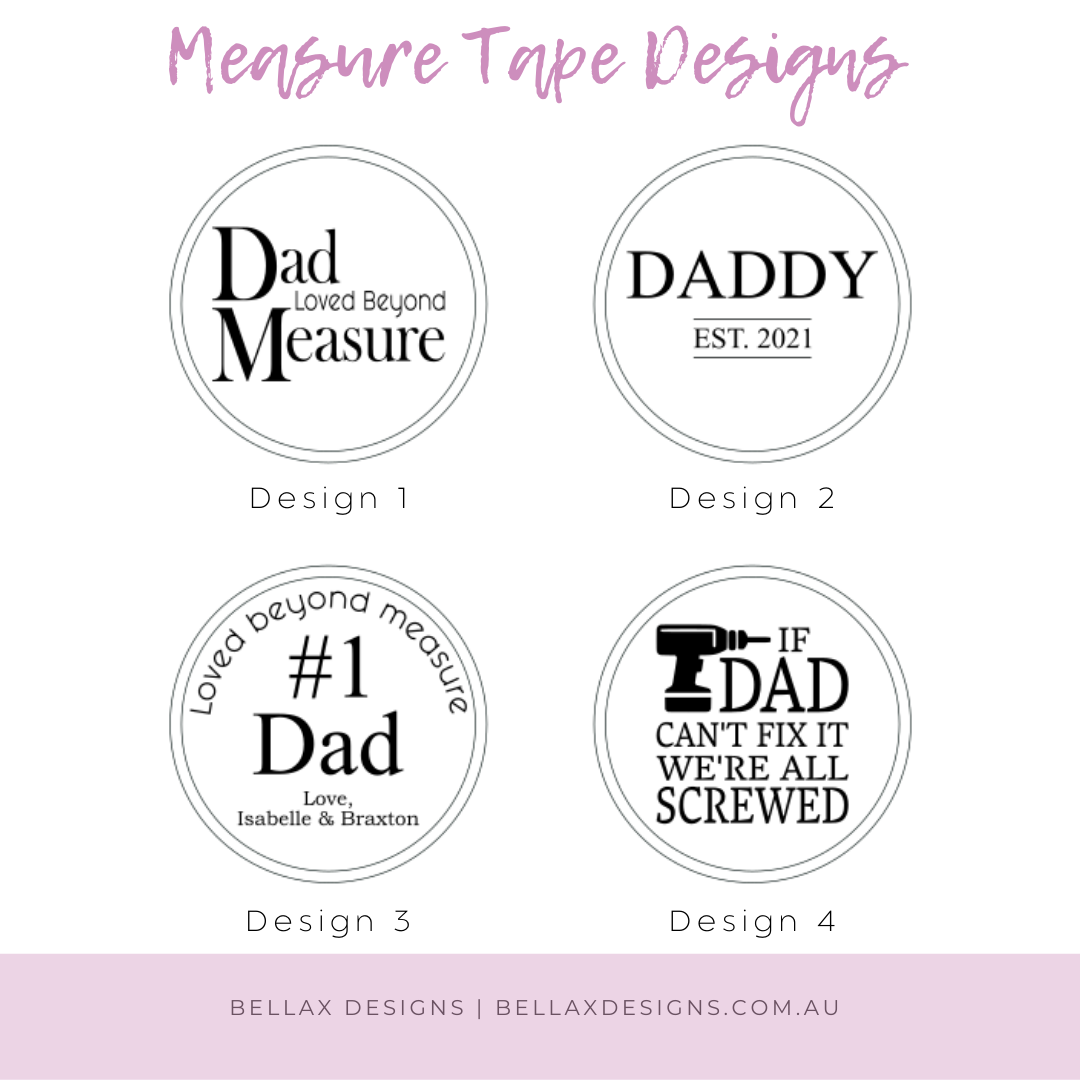 Looking for a unique and practical Father's Day gift for the dad, poppy, grandad or bonus dad in your life? Look no further than this personalised measuring tape! This measuring tape has four designs to choose from to make it personal and special.