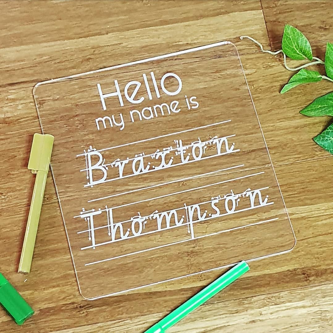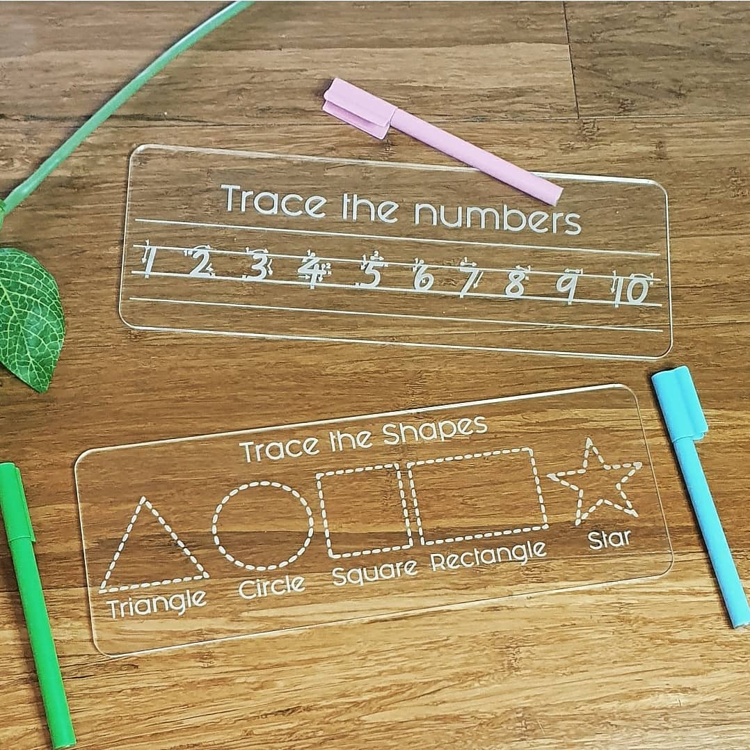 Traceable clear acrylic learning boards that can be personalised with the child's name!
