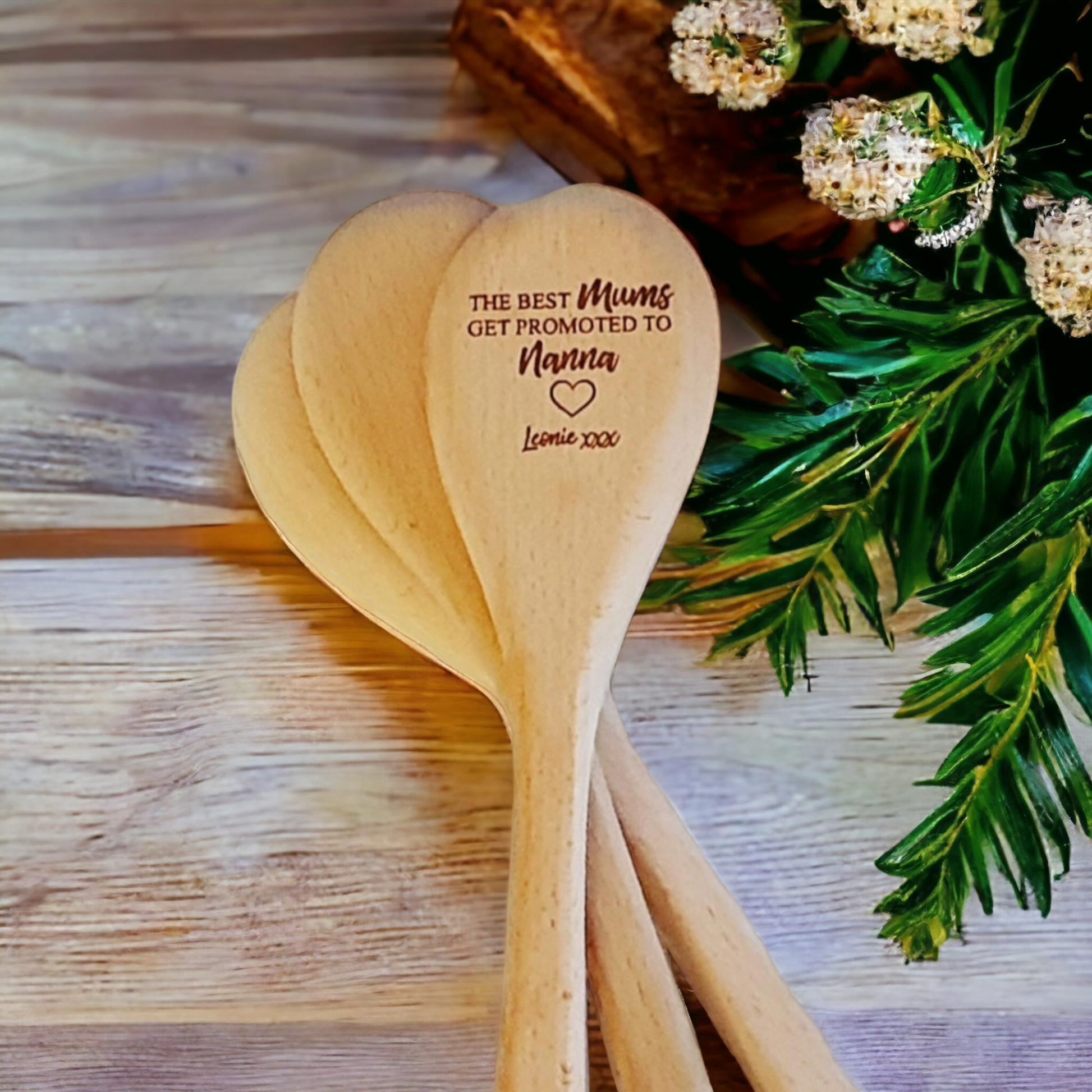This unique personalised Wooden Spoon will be a great hit this mothers day. A special and meaningful gift for Mum, Nan or Grandma, whoever it's for we can adjust the design to suit. Why not show the special lady in your life how much you love her and her cooking!