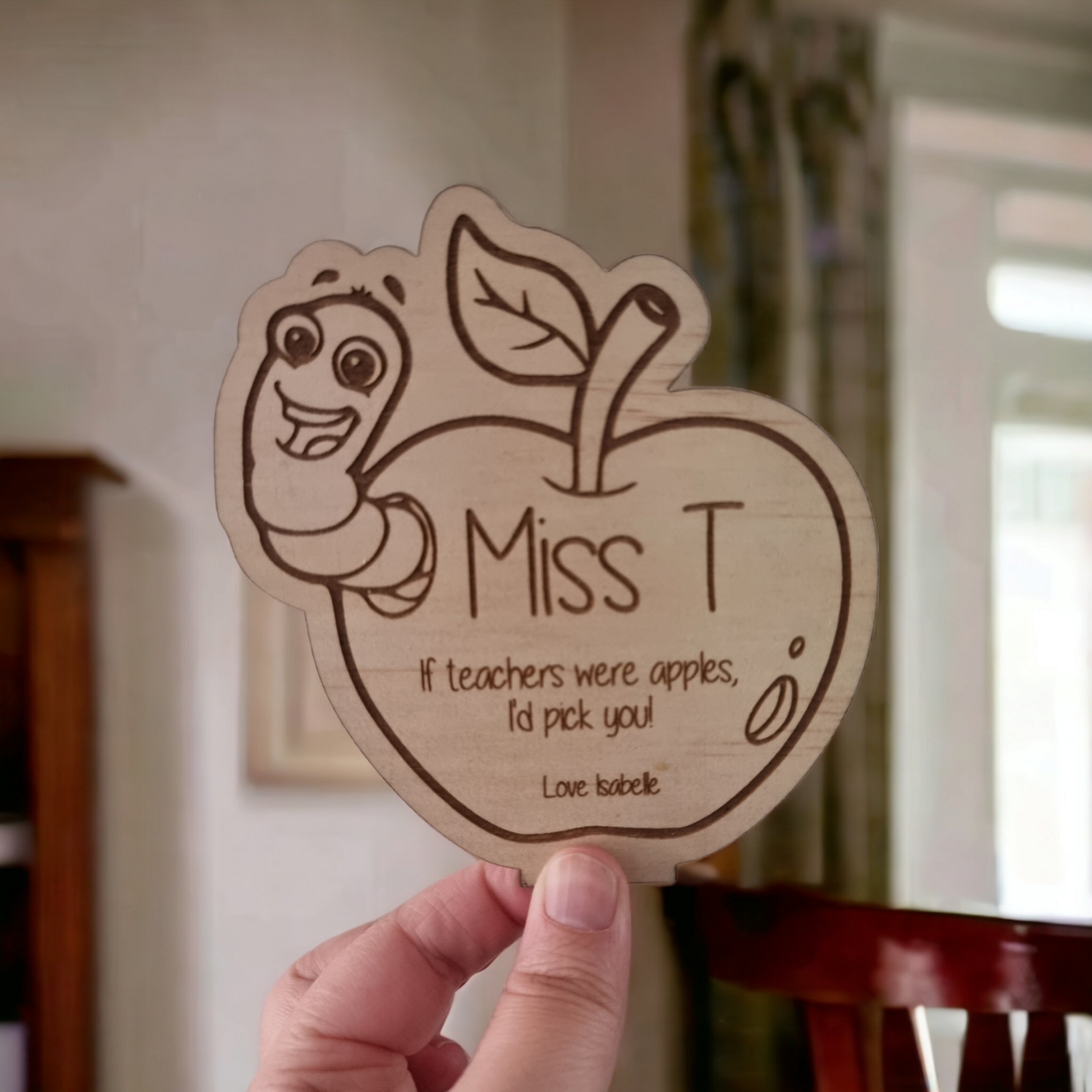 Looking for a unique and special gift for a loved one or colleague? Look no further than this personalised wooden engraved plaque. This premium plywood plaque is the perfect choice for end-of-year gifts, teacher farewells, or commemorating milestones like moving up in nursery. The plaque stands up on a clear acrylic round stand, creating a beautiful display.